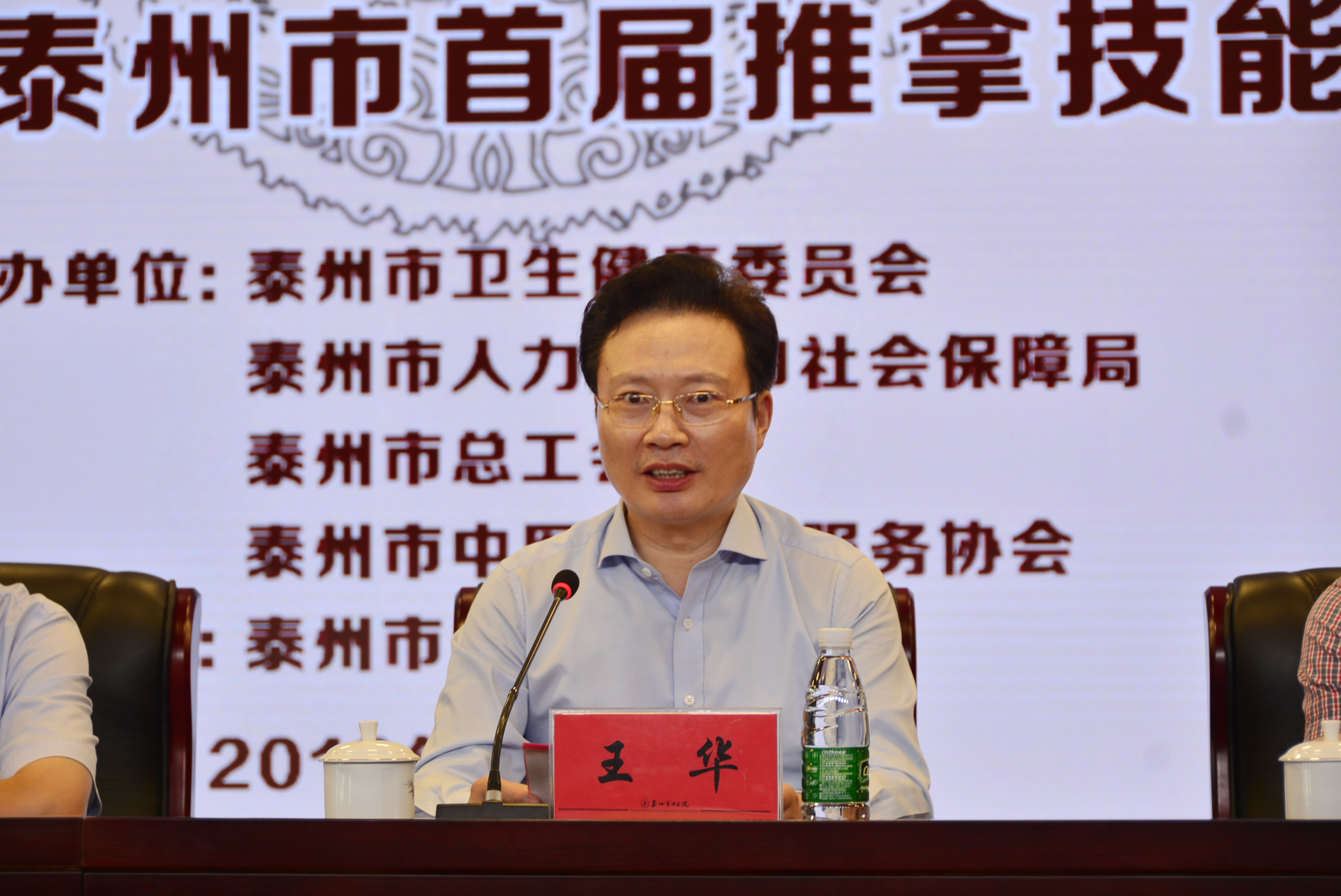 泰州市中醫(yī)院黨委書記、院長王華在致辭中對參加此次比賽的各級領(lǐng)導(dǎo)、專家及參賽選手們表示誠摯的歡迎。他表示此次推拿技能大賽目的在于推廣中醫(yī)推拿、規(guī)范中醫(yī)推拿、宣傳中醫(yī)推拿基本常識,以此來擴大中醫(yī)推拿的影響力、規(guī)范中醫(yī)推拿的技術(shù)、糾正部分群眾對中醫(yī)推拿的錯誤觀念。同時,也借此次機會為各位推拿專家搭建一個溝通互助、交流提高的良好平臺,讓大家在同臺競技中查漏補缺,提高推拿水平。