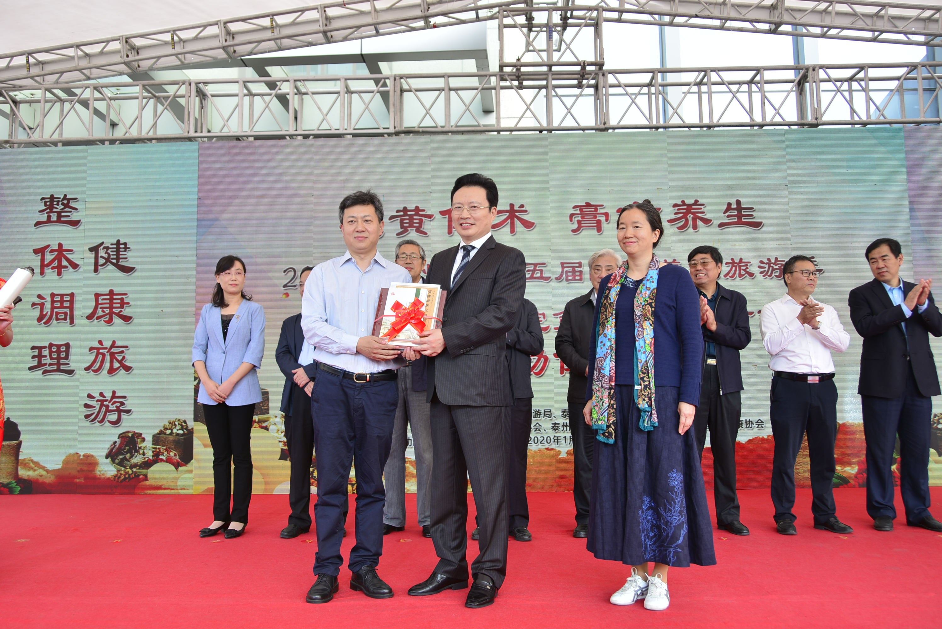 泰州市政協(xié)副主席繆云忠,全國名老中醫(yī)、同濟大學中醫(yī)研究所副所長顏乾麟,泰州市老年健康協(xié)會會長張正方,泰州市老科技工作者協(xié)會會長戴勝利,泰州市衛(wèi)生健康委員會主任劉宏鳴,泰州市科學技術協(xié)會主席楊國華,泰州市總工會副調研員楊小敏,泰州市文化廣電和旅游局副局長王瑾,中國中醫(yī)科學院廣安門醫(yī)院教育處處長姚魁武,山東省泰安市中醫(yī)醫(yī)院院長陳濤,中國中醫(yī)科學院廣安門醫(yī)院主任醫(yī)師、國醫(yī)大師薛伯壽工作站負責人薛燕星,泰州市衛(wèi)生健康委員會副主任翟德祥,泰州市中醫(yī)院院長王華,泰州市城管局政治部主任黃順宏,江蘇樂百年健康小鎮(zhèn)總經(jīng)理吳妍,以及泰州市各行業(yè)優(yōu)秀模范代表、先進工作者,泰州市中醫(yī)醫(yī)聯(lián)體成員單位代表,泰州市中醫(yī)院領導班子成員、職能處室及醫(yī)務人員代表,養(yǎng)生旅游專線游客等出席了本次開幕式。會議由泰州市旅游協(xié)會副會長、旅行社協(xié)會會長陳楠主持。