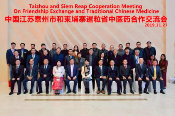 2019年11月27日,中國泰州—柬埔寨暹粒友城暨中醫(yī)藥合作交流會在泰州市中醫(yī)院召開,出席會議的中方領導、嘉賓有泰州市人民政府副市長王學鋒,泰州市人民政府副秘書長劉文榮,泰州市外事辦主任何軍,泰州市衛(wèi)健委主任劉宏鳴,泰州市中醫(yī)院黨委書記、院長王華,以及泰州市歸國華僑聯(lián)合會負責人,靖江、泰興、興化、姜堰外辦負責人,泰興市人民醫(yī)院、泰興市中醫(yī)院、姜堰區(qū)中醫(yī)院、興化市中醫(yī)院、靖江市中醫(yī)院負責人及援柬醫(yī)療專家。暹粒省政府副省長本布拉格率領的政府代表團,暹粒省省衛(wèi)生廳廳長格魯薩拉的醫(yī)療代表團,以及暹粒省吳哥國際醫(yī)院院長孫英杰一行出席會議。