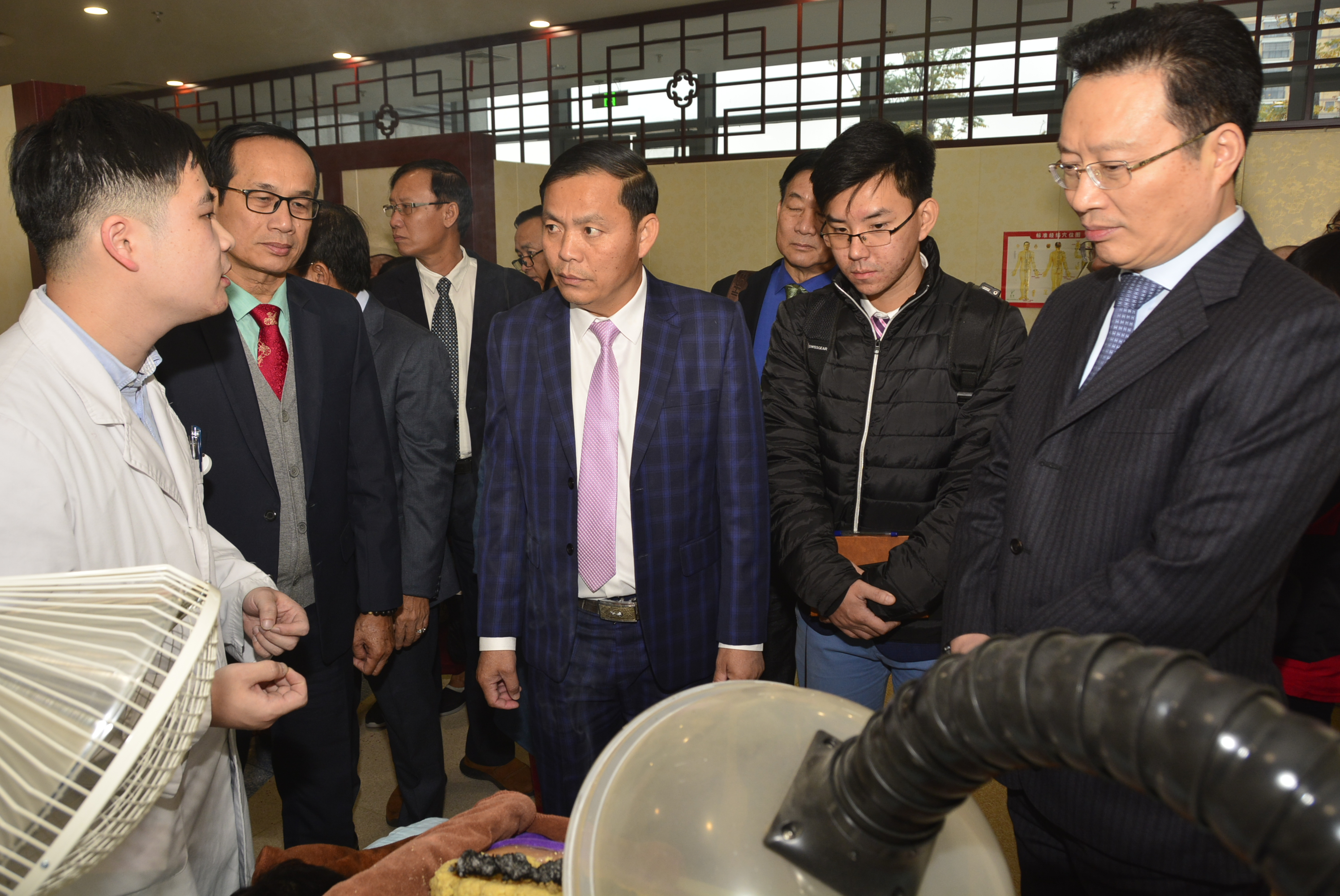 在中醫(yī)經(jīng)典病房和傳統(tǒng)療法中心,柬埔寨嘉賓代表團感受了濃濃的中醫(yī)藥文化氛圍,大家觀摩了天督灸、針灸、推拿等傳統(tǒng)特色療法,大贊中醫(yī)“Very good”。