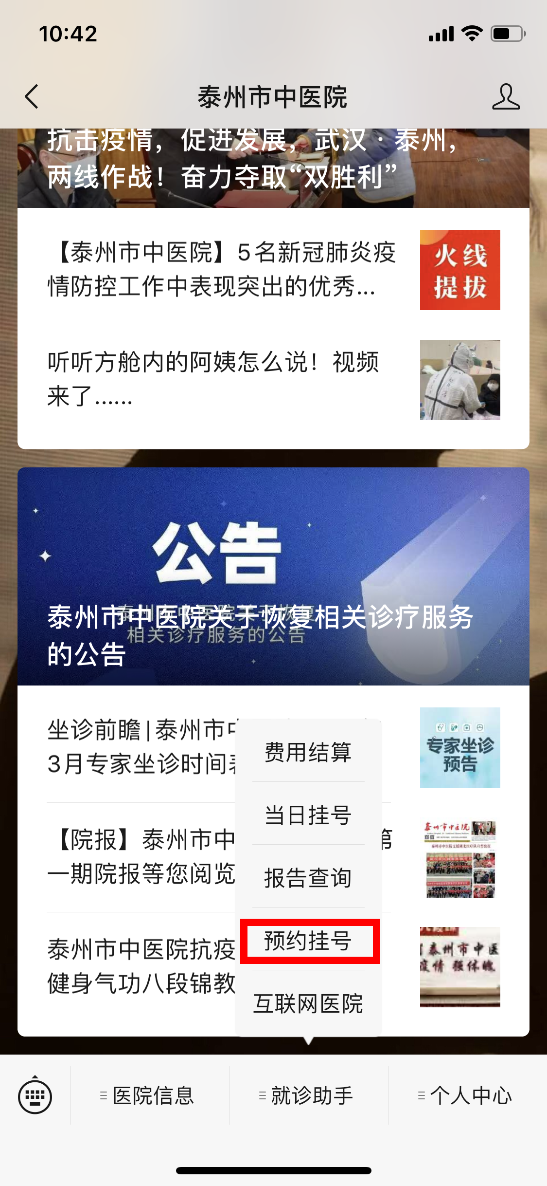 五、 “泰州智慧健康”微信公眾號(hào)預(yù)約