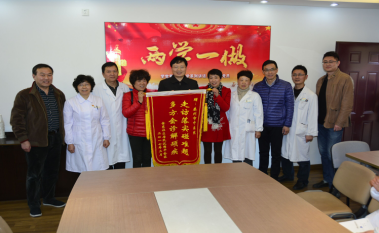 “今天我代表金東社區(qū)全體居民,代表患者及家屬,給你們贈送這面錦旗,表達一下我們的感激之情,是醫(yī)院領導的“大走訪、大落實”和專家們及時、有效的救治,使得唐奶奶早日擺脫了頑疾,看病過程中,手術中,以及手術之后,唐奶奶得到了醫(yī)護人員精心施治和護理,醫(yī)院精湛的醫(yī)術和專業(yè)的護理,使得唐奶奶逐漸獲得康復。謝謝你們!”金東社區(qū)倪書記如是說。