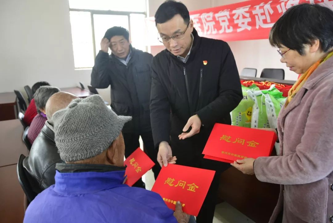 為認(rèn)真貫徹落實(shí)黨的十九大和十九屆三中、四中全會(huì)精神,鞏固深化“不忘初心、牢記使命”主題教育成果,進(jìn)一步提升廣大黨員群眾的幸福感和獲得感,確保度過一個(gè)歡樂祥和的春節(jié)。1月20日,泰州市中醫(yī)院組織開展大走訪大落實(shí)新風(fēng)行動(dòng)“關(guān)愛服務(wù)月”活動(dòng),我院黨員干部職工在黨委書記、院長(zhǎng)王華同志的帶領(lǐng)下深入基層,來到蔣垛鎮(zhèn)界河村、雙墩社區(qū)、金東社區(qū),走訪慰問了部分老黨員代表、困難群眾、殘疾人,為他們送去了黨委政府的關(guān)懷和新春的祝福。
