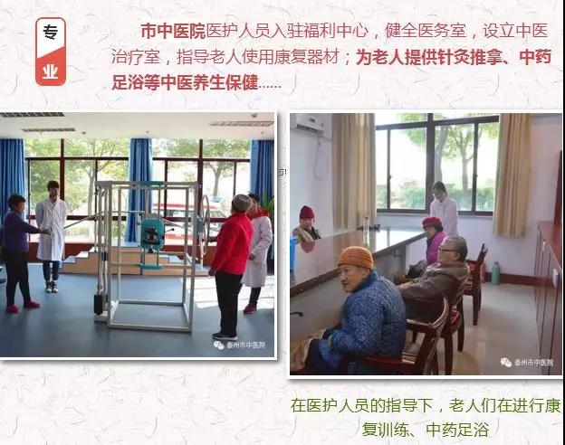 為了解決這一難題,經(jīng)過兩年的探索,泰州市中醫(yī)院率先在省內(nèi)探索出“中醫(yī)+養(yǎng)老”的醫(yī)養(yǎng)結(jié)合新模式,與泰州市福利中心合作成立“泰州市中醫(yī)院福利中心”分院,利用中醫(yī)藥在老年人康復(fù)、慢性病調(diào)理等方面的獨特優(yōu)勢,為老人們提供專業(yè)、持續(xù)的醫(yī)療護理,推進醫(yī)養(yǎng)融合,真正實現(xiàn)了"以醫(yī)助養(yǎng),以養(yǎng)帶醫(yī),醫(yī)養(yǎng)結(jié)合”的一體化模式,受到了國家中醫(yī)藥管理局以及同行業(yè)的熱切關(guān)注和肯定。