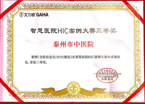 10月23日,中國醫(yī)院協(xié)會(huì)中醫(yī)醫(yī)院分會(huì)攜手廣州艾力彼醫(yī)院管理中心,在廣州召開了“2021屆中國中醫(yī)醫(yī)院最佳專科”發(fā)布會(huì)。我院案例《全院信息化(HIS)建設(shè)》榮獲“2021年智慧醫(yī)院HIC案例大賽總決賽”三等獎(jiǎng)。腦病科、脾胃病科成功入選了本次“2021屆中國中醫(yī)醫(yī)院最佳臨床型??啤?。