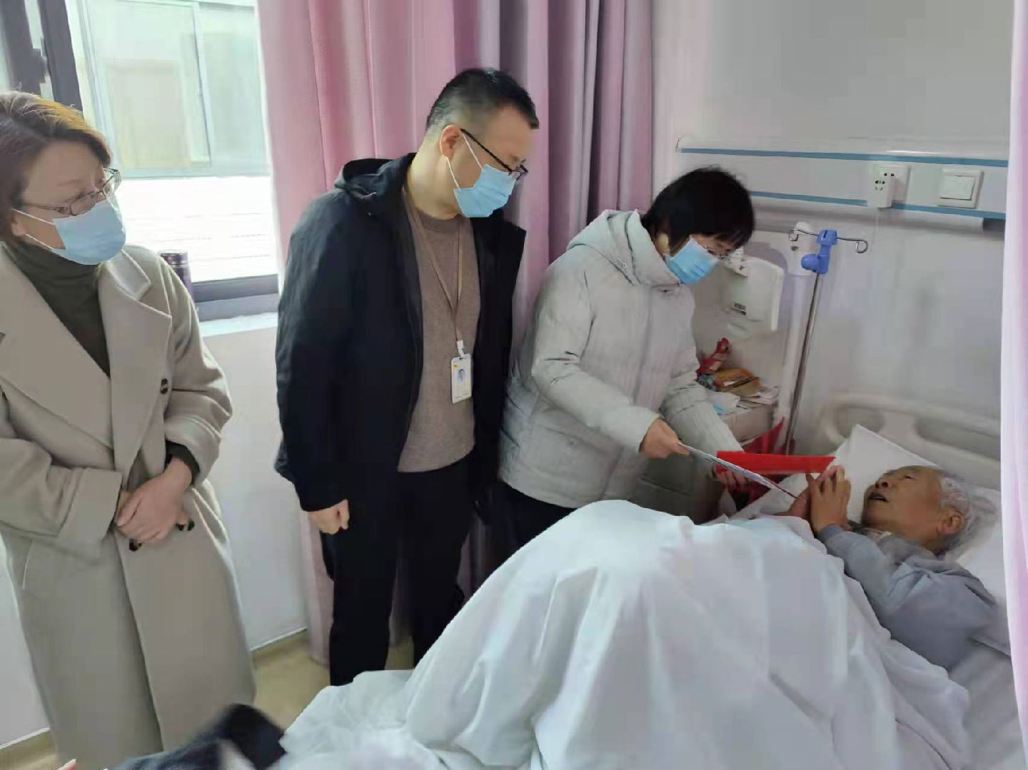 數(shù)九添寒意,慰問暖人心。壬寅虎年春節(jié)來臨前夕,為切實關(guān)心關(guān)愛離休老干部,1月20日上午,泰州市委老干部局副局長陳宇清、服務(wù)保障處處長郭春玲等一行人來到我院,同我院副院長殷勇、醫(yī)務(wù)處處長曹新建等走訪慰問在院離休老干部,為在院離休老干部送去關(guān)懷和慰問,并表達新春祝福。