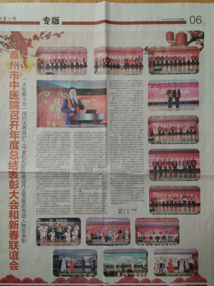 2018.2.13泰州日報:泰州市中醫(yī)院召開年度總結(jié)表彰大會和新春聯(lián)誼會