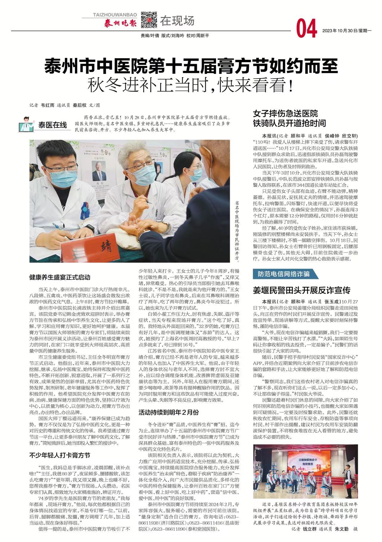 來源:泰州市中醫(yī)院 作者:編輯 時間:2023-11-01 09:17:18